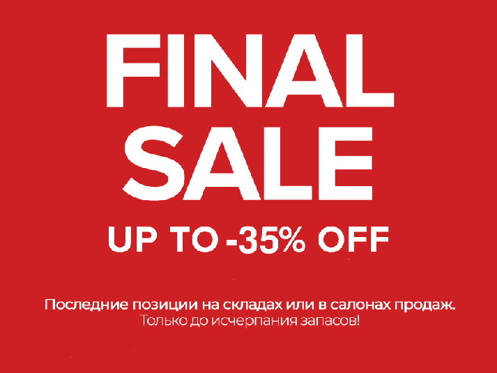 Не упустите шанс! В рамках Финальной распродажи года у вас есть уникальная возможность купить последние модели мебели с 35% скидкой. Товары уже у нас на складе, так что привезем быстро. Но и вы поспешите, акция действует только до исчерпания запасов.